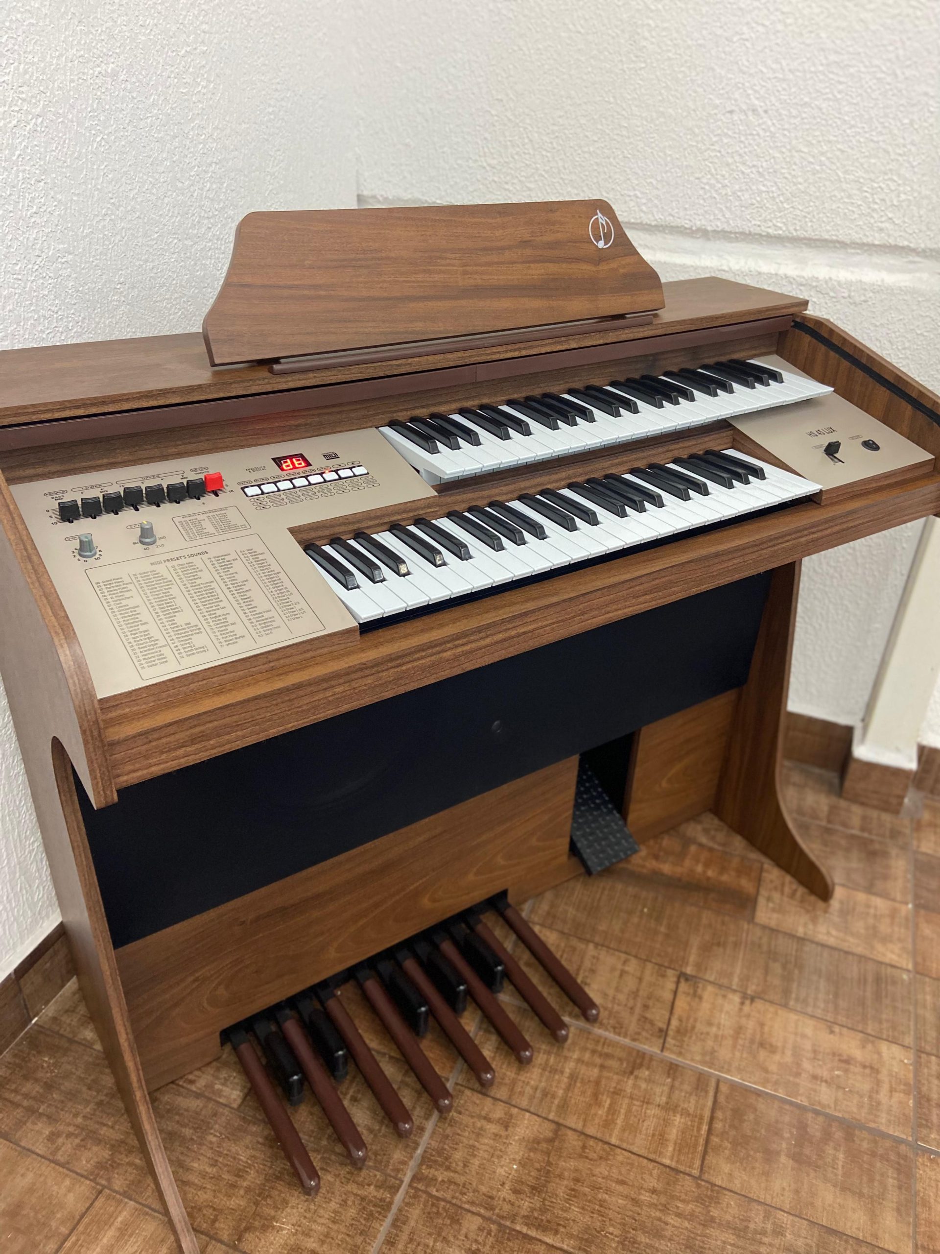 Sons Prontos (128 internos): Piano, Eletronic piano, Harps, Drawbar Organ, Reed Organ, Percussive Organ, Rock Organ, Church Organ, Accordion, Vibes, Strings, Brass, Trombone, Trumpet entre outros.